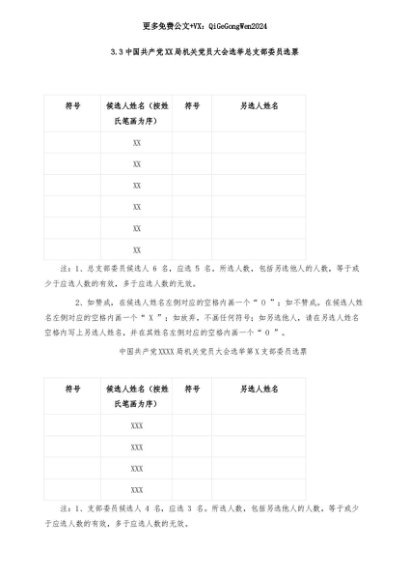 【七哥公文】2025年:3.3中国共产党XX局机关党员大会选举总支部委员选票+更多免费公文+VX:QiGeGongWen2024+更多免费公文+VX:QiGeGongWen2024