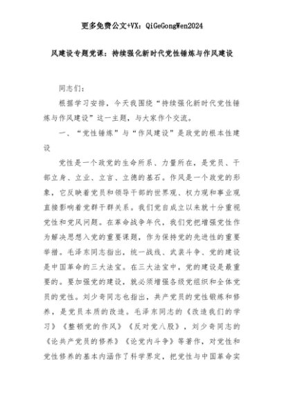 【七哥公文】2025年:风建设专题党课:持续强化新时代党性锤炼与作风建设+更多免费公文+VX:QiGeGongWen2024+更多免费公文+VX:QiGeGongWen2024