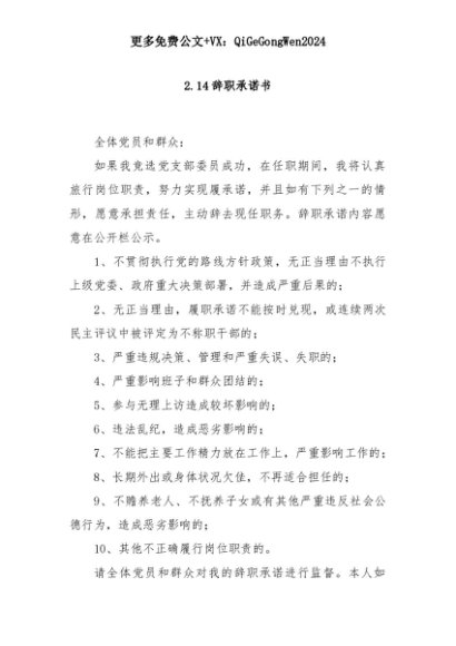 【七哥公文】2025年:2.14辞职承诺书+更多免费公文+VX:QiGeGongWen2024+更多免费公文+VX:QiGeGongWen2024