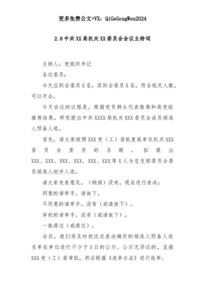 【七哥公文】2025年:2.8中共XX局机关XX委员会会议主持词+更多免费公文+VX:QiGeGongWen2024+更多免费公文+VX:QiGeGongWen2024