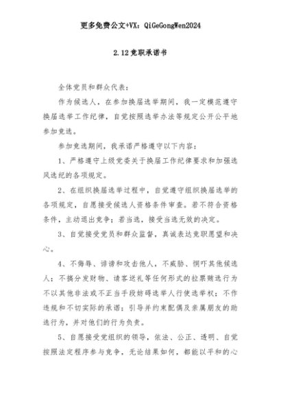 【七哥公文】2025年:2.12竞职承诺书+更多免费公文+VX:QiGeGongWen2024+更多免费公文+VX:QiGeGongWen2024