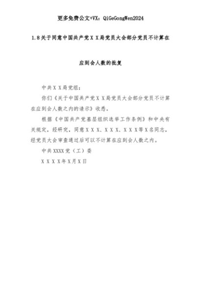 【七哥公文】2025年:1.8关于同意中国共产党X X局党员大会部分党员不计算在应到会人数的批复+更多免费公文+VX:QiGeGongWen2024+更多免费公文+VX:QiGeGongWen2024