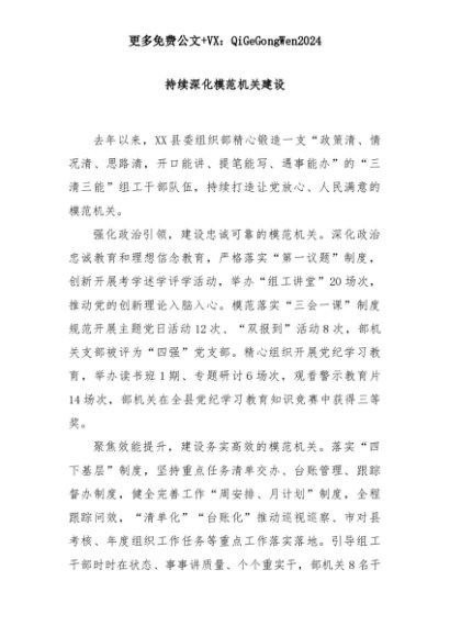 【七哥公文】2025年:持续深化模范机关建设+更多免费公文+VX:QiGeGongWen2024+更多免费公文+VX:QiGeGongWen2024
