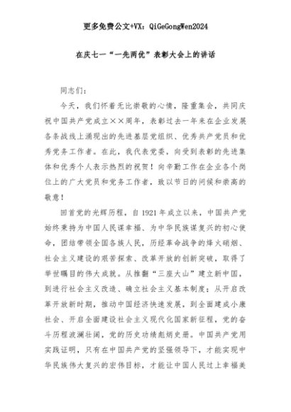 【七哥公文】2025年:在庆七一“一先两优”表彰大会上的讲话+更多免费公文+VX:QiGeGongWen2024+更多免费公文+VX:QiGeGongWen2024