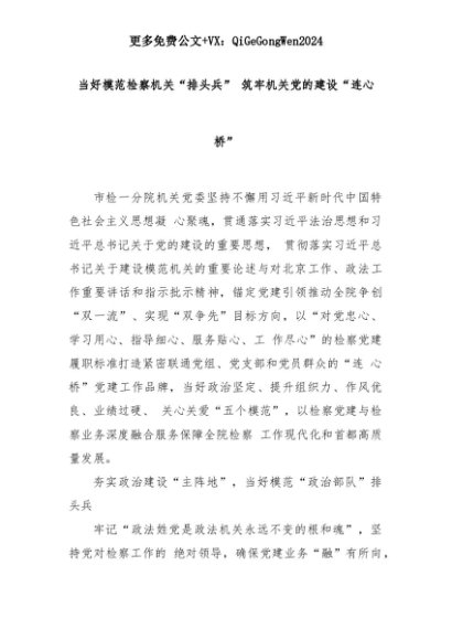 【七哥公文】2025年:当好模范检察机关“排头兵” 筑牢机关党的建设“连心桥”+更多免费公文+VX:QiGeGongWen2024+更多免费公文+VX:QiGeGongWen2024