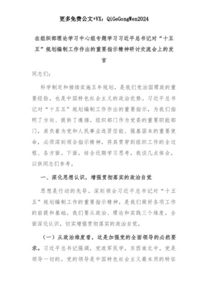 【七哥公文】2025年:在组织部理论学习中心组专题学习习近平总书记对“十五五”规划编制工作作出的重要指示精神研讨交流会上的发言+更多免费公文+VX:QiGeGongWen2024+更多免费公文+VX:QiGeGongWen2024