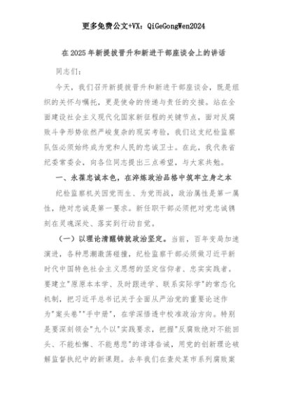【七哥公文】2025年:在2025年新提拔晋升和新进干部座谈会上的讲话+更多免费公文+VX:QiGeGongWen2024+更多免费公文+VX:QiGeGongWen2024
