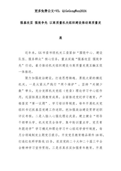 【七哥公文】2025年:强基攻坚 强效争先 以高质量机关组织建设推动高质量发展+更多免费公文+VX:QiGeGongWen2024+更多免费公文+VX:QiGeGongWen2024