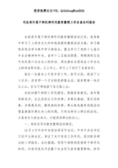 【七哥公文】2025年:司法局开展干部纪律作风教育整顿工作自查自纠报告+更多免费公文+VX:QiGeGongWen2024+更多免费公文+VX:QiGeGongWen2024