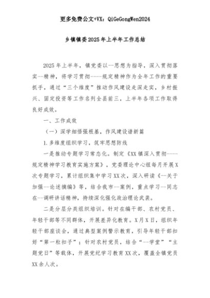 【七哥公文】2025年:乡镇镇委2025年上半年工作总结+更多免费公文+VX:QiGeGongWen2024+更多免费公文+VX:QiGeGongWen2024