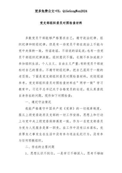 【七哥公文】2025年:党支部组织委员对照检查材料+更多免费公文+VX:QiGeGongWen2024+更多免费公文+VX:QiGeGongWen2024