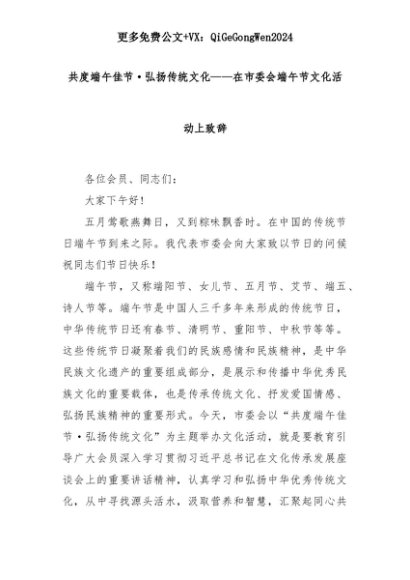 【七哥公文】2025年:共度端午佳节·弘扬传统文化——在市委会端午节文化活动上致辞+更多免费公文+VX:QiGeGongWen2024+更多免费公文+VX:QiGeGongWen2024