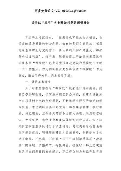 【七哥公文】2025年:关于以“三不”机制整治问题的调研报告+更多免费公文+VX:QiGeGongWen2024+更多免费公文+VX:QiGeGongWen2024