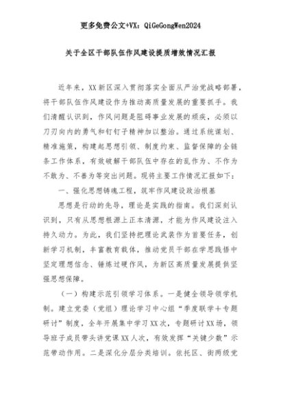 【七哥公文】2025年:关于全区干部队伍作风建设提质增效情况汇报+更多免费公文+VX:QiGeGongWen2024+更多免费公文+VX:QiGeGongWen2024