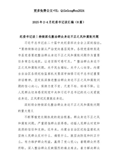 【七哥公文】2025年:(8篇)2025年2-4月纪委书记谈汇编+更多免费公文+VX:QiGeGongWen2024+更多免费公文+VX:QiGeGongWen2024