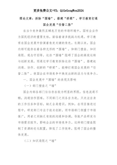 【七哥公文】2025年:理论文章:拆除“围墙”,搭建“桥梁”,学习教育打通国企发展“任督二脉”+更多免费公文+VX:QiGeGongWen2024+更多免费公文+VX:QiGeGongWen2024