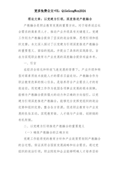 【七哥公文】2025年:理论文章:以党建为引领,深度推进产教融合+更多免费公文+VX:QiGeGongWen2024+更多免费公文+VX:QiGeGongWen2024