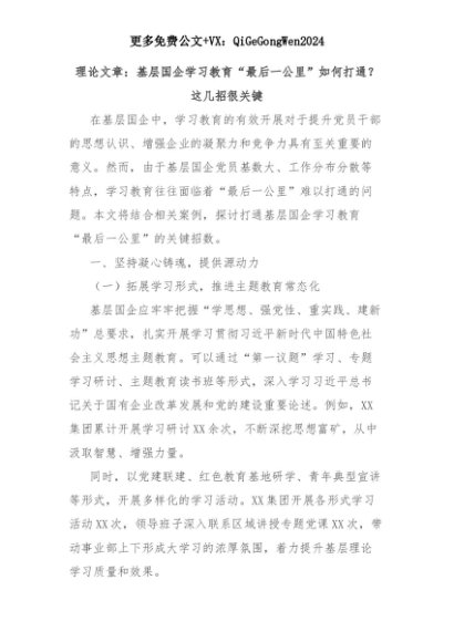 【七哥公文】2025年:理论文章:基层国企学习教育“最后一公里”如何打通?这几招很关键+更多免费公文+VX:QiGeGongWen2024+更多免费公文+VX:QiGeGongWen2024