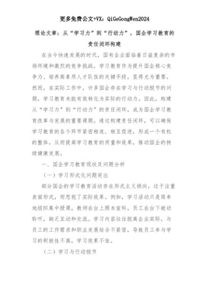 【七哥公文】2025年:理论文章:从“学习力”到“行动力”,国企学习教育的责任闭环构建+更多免费公文+VX:QiGeGongWen2024+更多免费公文+VX:QiGeGongWen2024