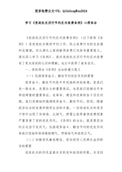 【七哥公文】2025年:学习《党政机关厉行节约反对浪费条例》心得体会+更多免费公文+VX:QiGeGongWen2024+更多免费公文+VX:QiGeGongWen2024