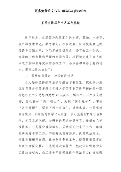 【七哥公文】2025年:某同志近三年个人工作总结+更多免费公文+VX:QiGeGongWen2024+更多免费公文+VX:QiGeGongWen2024