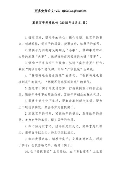 【七哥公文】2025年:真抓实干类排比句(2025年5月21日)+更多免费公文+VX:QiGeGongWen2024+更多免费公文+VX:QiGeGongWen2024
