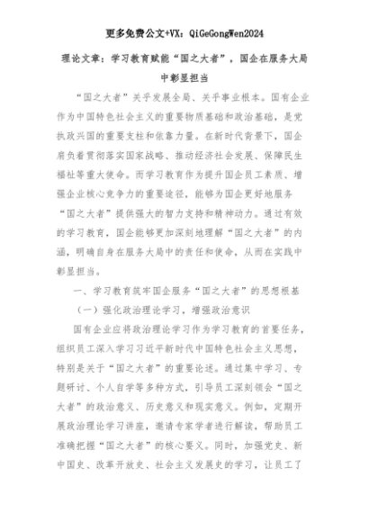 【七哥公文】2025年:理论文章:学习教育赋能“国之大者”,国企在服务大局中彰显担当+更多免费公文+VX:QiGeGongWen2024+更多免费公文+VX:QiGeGongWen2024