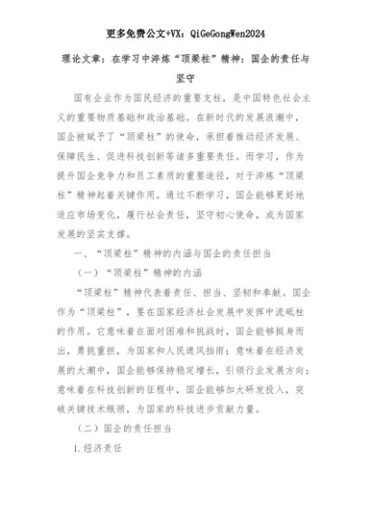 【七哥公文】2025年:理论文章:在学习中淬炼“顶梁柱”精神:国企的责任与坚守+更多免费公文+VX:QiGeGongWen2024+更多免费公文+VX:QiGeGongWen2024