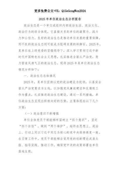 【七哥公文】2025年:2025年单位政治生态分析报告+更多免费公文+VX:QiGeGongWen2024+更多免费公文+VX:QiGeGongWen2024