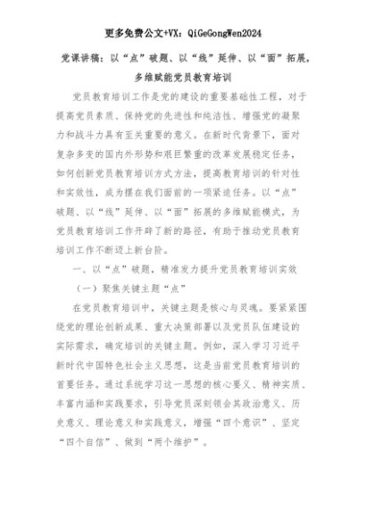 【七哥公文】2025年:党课讲稿:以“点”破题、以“线”延伸、以“面”拓展,多维赋能党员教育培训+更多免费公文+VX:QiGeGongWen2024+更多免费公文+VX:QiGeGongWen2024