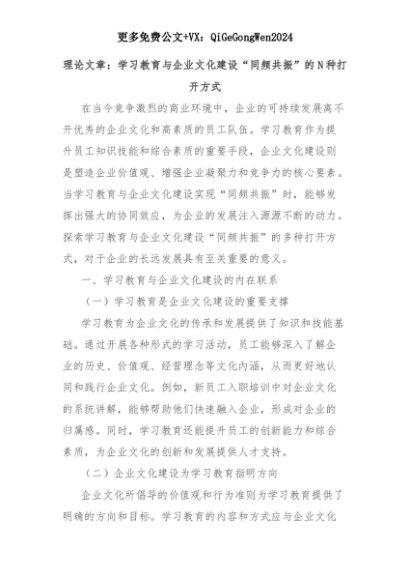 【七哥公文】2025年:理论文章:学习教育与企业文化建设“同频共振”的N种打开方式+更多免费公文+VX:QiGeGongWen2024+更多免费公文+VX:QiGeGongWen2024