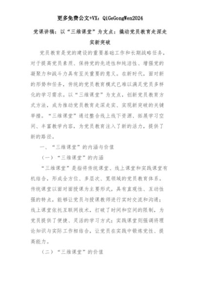 【七哥公文】2025年:党课讲稿:以“三维课堂”为支点:撬动党员教育走深走实新突破+更多免费公文+VX:QiGeGongWen2024+更多免费公文+VX:QiGeGongWen2024