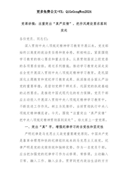 【七哥公文】2025年:党课讲稿:注重突出“真严实情”,把作风建设要求落到实处+更多免费公文+VX:QiGeGongWen2024+更多免费公文+VX:QiGeGongWen2024