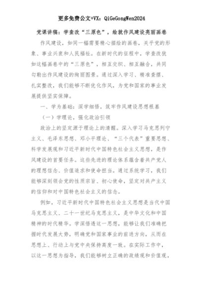 【七哥公文】2025年:党课讲稿:学查改“三原色”,绘就作风建设亮丽画卷+更多免费公文+VX:QiGeGongWen2024+更多免费公文+VX:QiGeGongWen2024