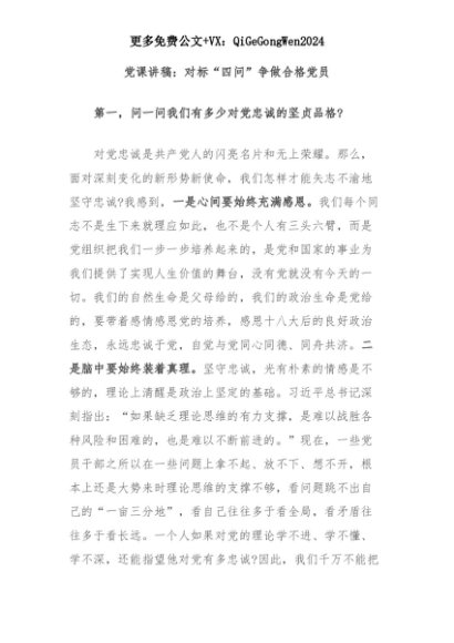 【七哥公文】2025年:党课讲稿:对标“四问”争做合格党员+更多免费公文+VX:QiGeGongWen2024+更多免费公文+VX:QiGeGongWen2024