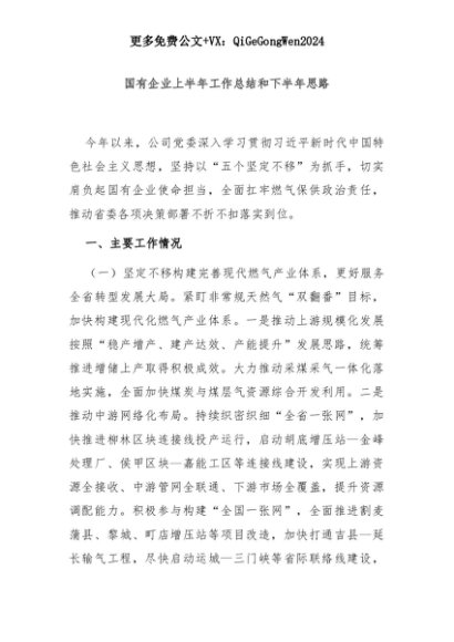 【七哥公文】2025年:国有企业上半年工作总结和下半年思路+更多免费公文+VX:QiGeGongWen2024+更多免费公文+VX:QiGeGongWen2024