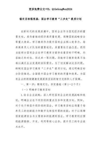 【七哥公文】2025年:锚定目标强根基:国企学习教育“三步走”提质计划+更多免费公文+VX:QiGeGongWen2024+更多免费公文+VX:QiGeGongWen2024