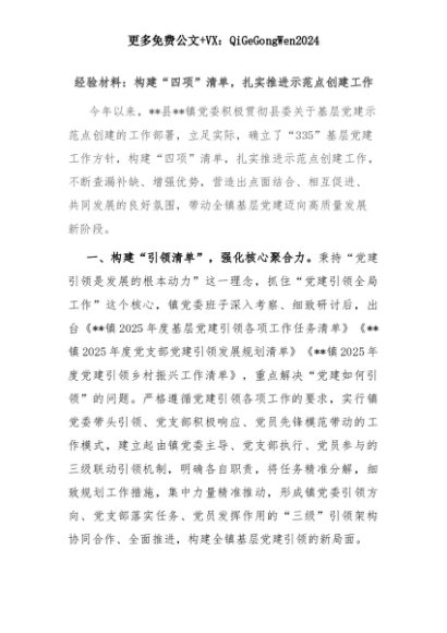 【七哥公文】2025年:经验材料:构建“四项”清单,扎实推进示范点创建工作+更多免费公文+VX:QiGeGongWen2024+更多免费公文+VX:QiGeGongWen2024
