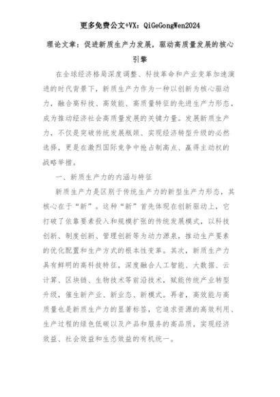 【七哥公文】2025年:理论文章:促进新质生产力发展,驱动高质量发展的核心引擎+更多免费公文+VX:QiGeGongWen2024+更多免费公文+VX:QiGeGongWen2024