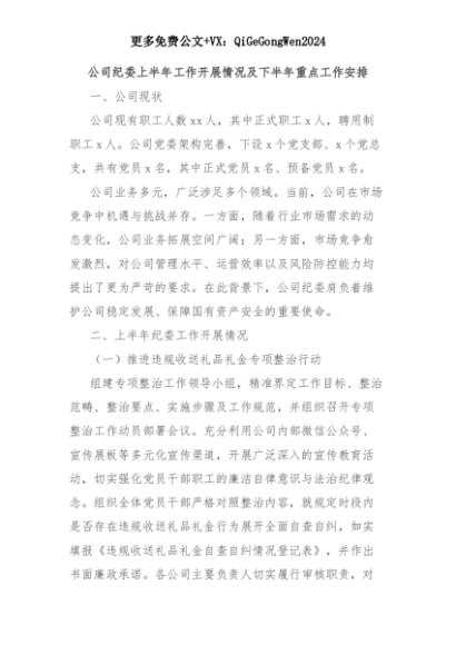 【七哥公文】2025年:公司纪委上半年工作开展情况及下半年重点工作安排+更多免费公文+VX:QiGeGongWen2024+更多免费公文+VX:QiGeGongWen2024