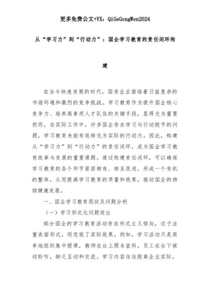 【七哥公文】2025年:从“学习力”到“行动力”:国企学习教育的责任闭环构建+更多免费公文+VX:QiGeGongWen2024+更多免费公文+VX:QiGeGongWen2024