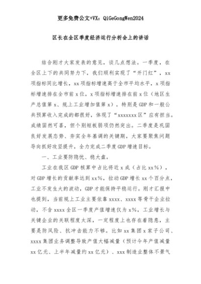【七哥公文】2025年:区长在全区季度经济运行分析会上的讲话+更多免费公文+VX:QiGeGongWen2024+更多免费公文+VX:QiGeGongWen2024