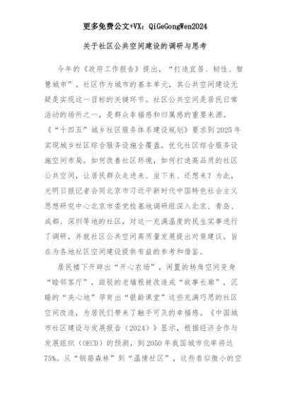 【七哥公文】2025年:关于社区公共空间建设的调研与思考+更多免费公文+VX:QiGeGongWen2024+更多免费公文+VX:QiGeGongWen2024