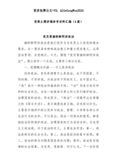【七哥公文】2025年:(3篇)党课主题讲稿参考材料汇编+更多免费公文+VX:QiGeGongWen2024+更多免费公文+VX:QiGeGongWen2024