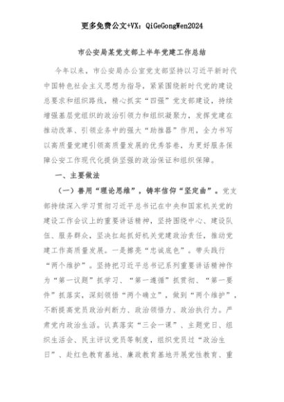 【七哥公文】2025年:市公安局某党支部上半年党建工作总结+更多免费公文+VX:QiGeGongWen2024+更多免费公文+VX:QiGeGongWen2024