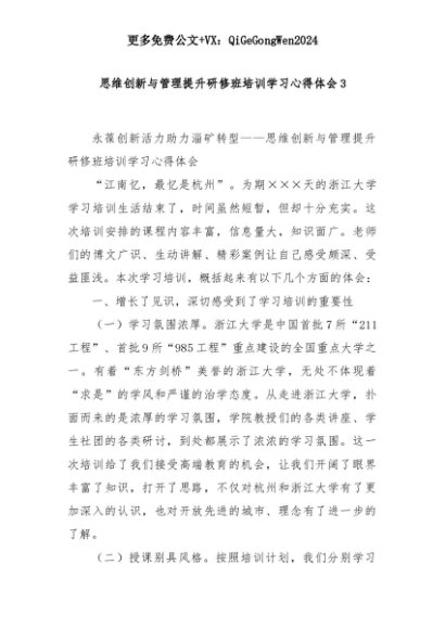 【七哥公文】2025年:思维创新与管理提升研修班培训学习心得体会3+更多免费公文+VX:QiGeGongWen2024+更多免费公文+VX:QiGeGongWen2024