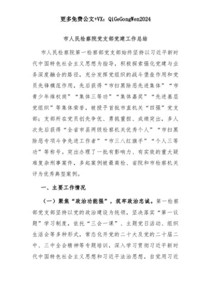 【七哥公文】2025年:市人民检察院党支部党建工作总结+更多免费公文+VX:QiGeGongWen2024+更多免费公文+VX:QiGeGongWen2024