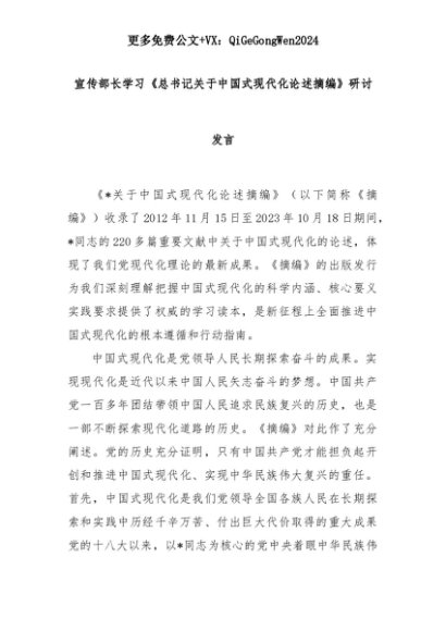 【七哥公文】2025年:宣传部长学习《总书记关于中国式现代化论述摘编》研讨发言+更多免费公文+VX:QiGeGongWen2024+更多免费公文+VX:QiGeGongWen2024