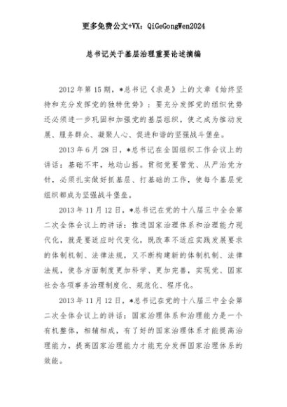 【七哥公文】2025年:总书记关于基层治理重要论述摘编+更多免费公文+VX:QiGeGongWen2024+更多免费公文+VX:QiGeGongWen2024