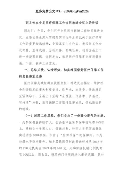 【七哥公文】2025年:副县长在全县医疗保障工作协同推进会议上的讲话+更多免费公文+VX:QiGeGongWen2024+更多免费公文+VX:QiGeGongWen2024